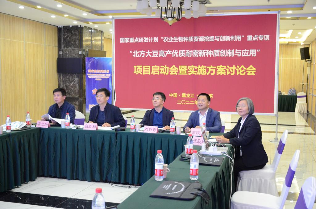 9月8日,由我校农学院张淑珍教授主持的“十四五”国家重点研发计划“北方大豆高产优质耐密新种质创制与应用”项目启动会在我校召开。中国农村技术开发中心项目专员戴翊超、姚志鹏,专项咨询专家中国农业科学院作物科学研究所韩天富研究员、华智生物技术有限公司董事长田冰川研究员,项目特邀专家南京农业大学盖钧镒院士、中国农业科学院作物科学研究所邱丽娟研究员、中国科学院遗传与发育生物学研究所田志喜研究员,黑龙江省科技厅农村科技处处长李宜刚、二级调研员刘淑艳,我校副校长刘竹青,农学院院长陈庆山、科技处处长寇胜利、副处长康立功,北京中立诚会计师事务所高级会计师陈微,以及项目组成员等80余人通过线上、线下相结合的方式参加会议。会议由寇胜利、韩天富分阶段主持。