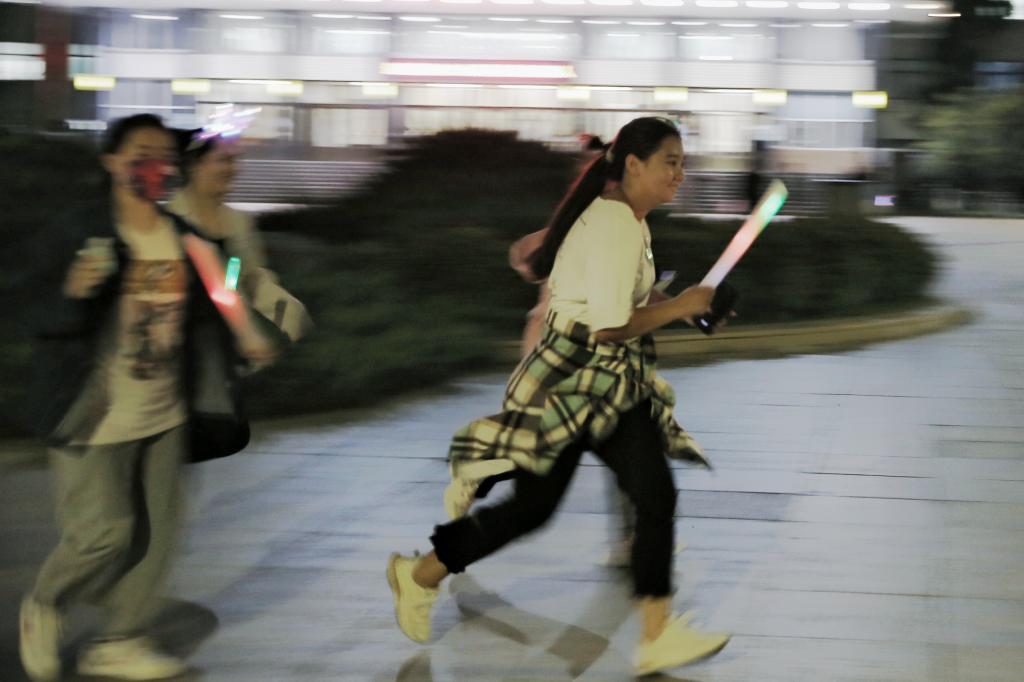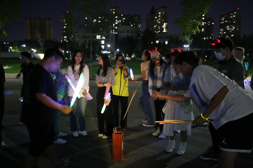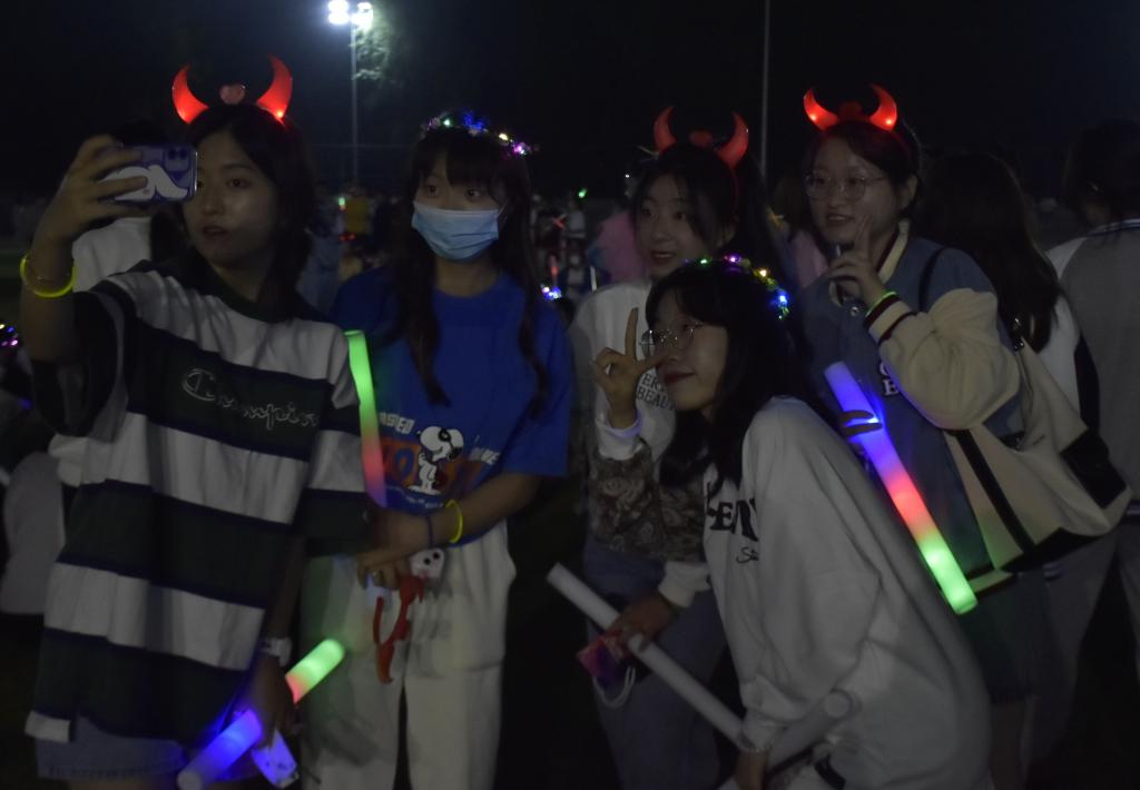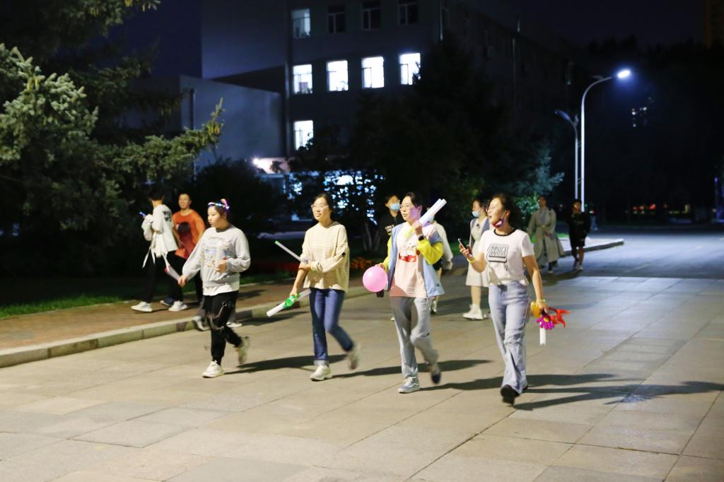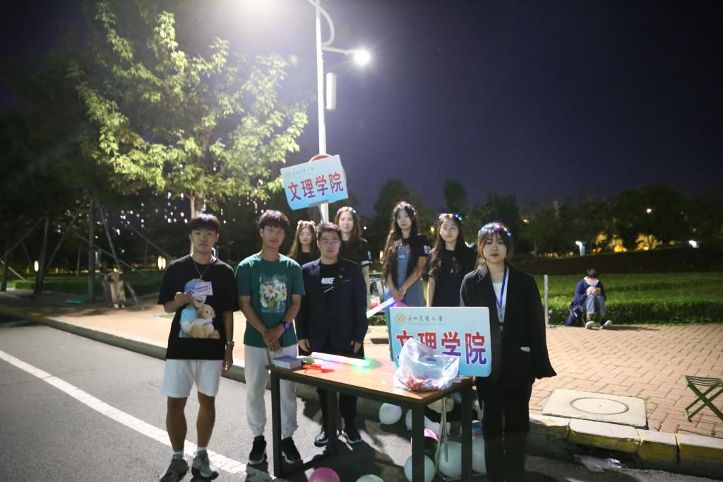 本次“荧光夜跑”活动吸引5千余名学生报名参加,按照报名先后顺序选取150组队伍,共计900人参赛。参赛队员从体育场出发,根据工作人员提供的线索寻找过关卡点,途径梦想小镇、后稷园,以及全校15个学院学生会设立的趣味比赛卡点,在完成相应过关任务后,最终返回音乐厅完成计时。为丰富荧光夜跑活动的趣味性,活动过程中还增加了隐藏随机游戏环节,全校16个学院分别设置了学院游戏点,设置丰富多样的趣味游戏,完成游戏的小组不仅可以获得下一站点的“通关秘籍”,还可以获得各学院定制纪念品,同学们参与热情极大,沿途众多学生驻足观看。
