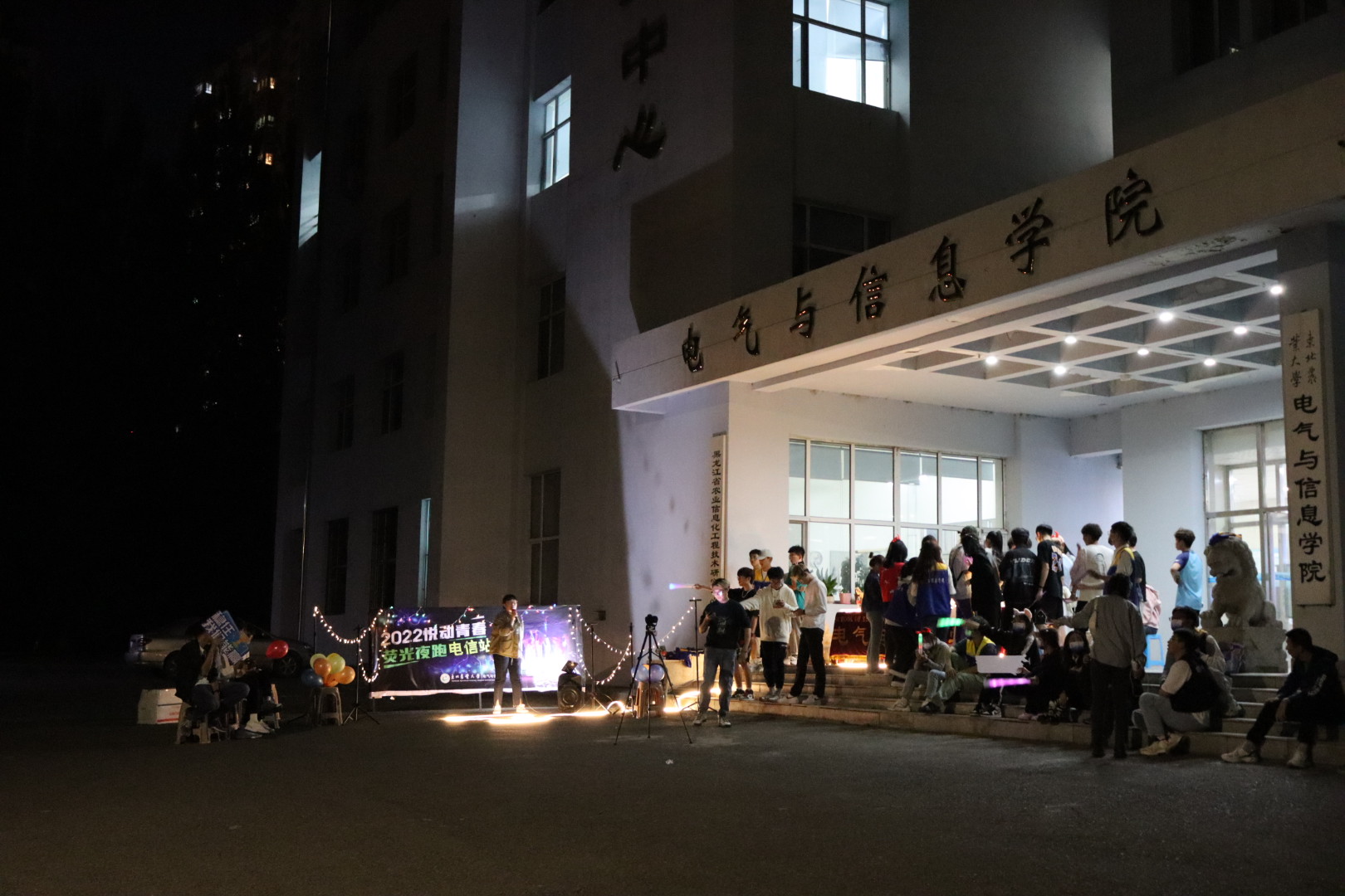 荧光夜跑活动中,在夜光下、光影中,选手们手持各色荧光棒,佩戴荧光头饰和手环,点点荧光装点着校园,形成一道亮丽的风景线。同学们在夜跑过程中可以沿途欣赏校园内特制的荧光装置艺术,终点感受各类文化演出的快乐氛围。同学们将“荧光夜跑”活动称为“东农校园内最闪亮的4公里赛跑”,以短跑形式的体育锻炼强身健体,以提倡全面运动将健康生活传递给身边的同学。