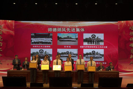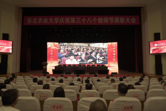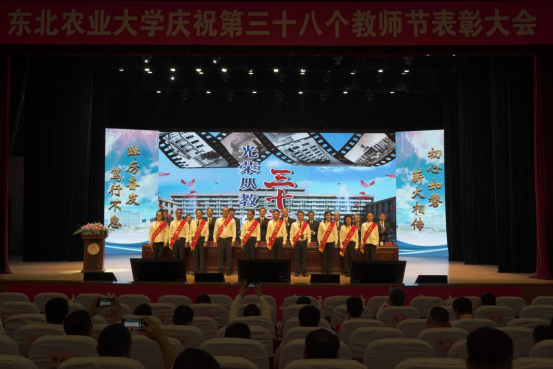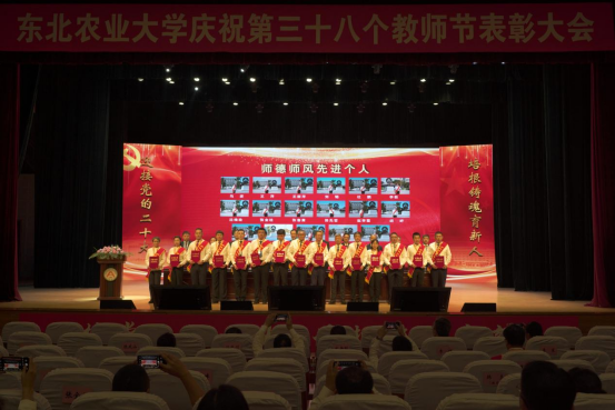 校党委副书记兼工会主席庞玉红宣读《东北农业大学关于表彰师德师风先进集体、突出贡献奖、优秀教师、师德师风先进个人、优秀教育工作者的决定》。授予6个集体“师德师风先进集体”称号,17名个人“突出贡献奖”称号,23名个人“优秀教师”称号,17名个人“师德师风先进个人”称号,17名个人“优秀教育工作者”称号。