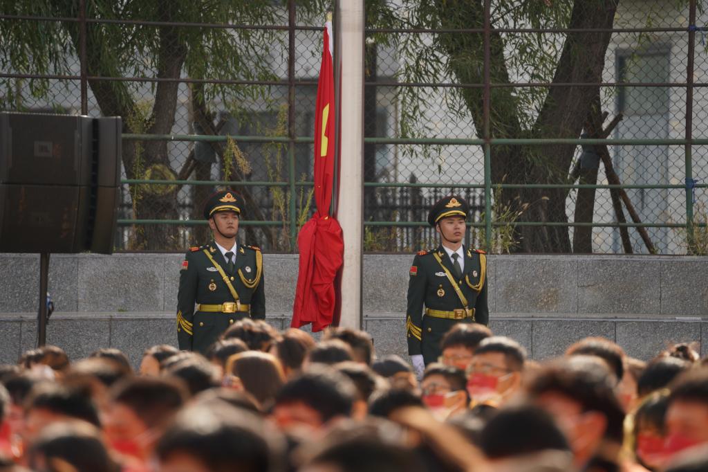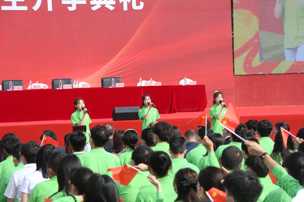 上午九时,五星红旗伴随雄壮的国歌声冉冉升起,开学典礼在庄严的升旗仪式中拉开帷幕。