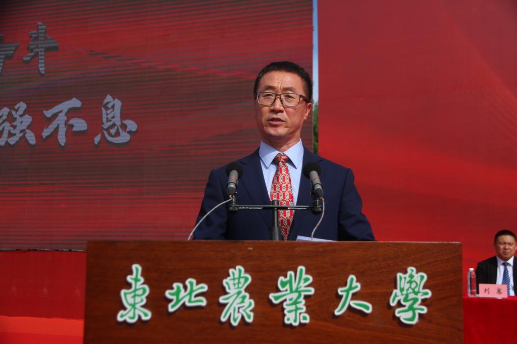 动物科学技术学院院长刘忠华教授作为教师代表发言。他回顾了在东农求学、工作的经历,分享了在东农奋斗32年来对校训、校风、东农精神的思考与理解,勉励全体新生饮水思源、心怀感恩,谨记东农校训、践行东农精神、传承东农校风,在新的征程筑梦东农、逐梦东农、圆梦东农,努力成为引领新时代的奋斗者。