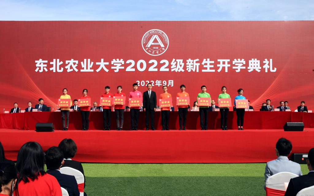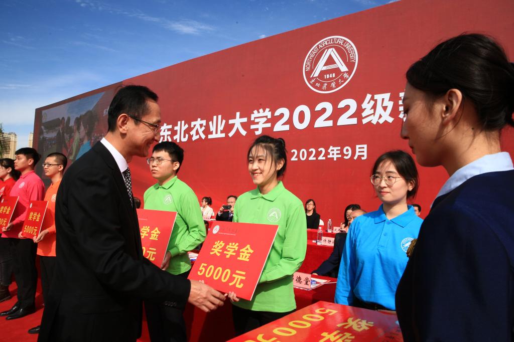 校党委书记李长生为本硕博连读研究生新生代表颁发专项奖学金,鼓励更多学生学习在东农、积淀在东农、成长在东农,潜心科研攻关,勇攀科技高峰,奋力担起强农兴农时代使命。