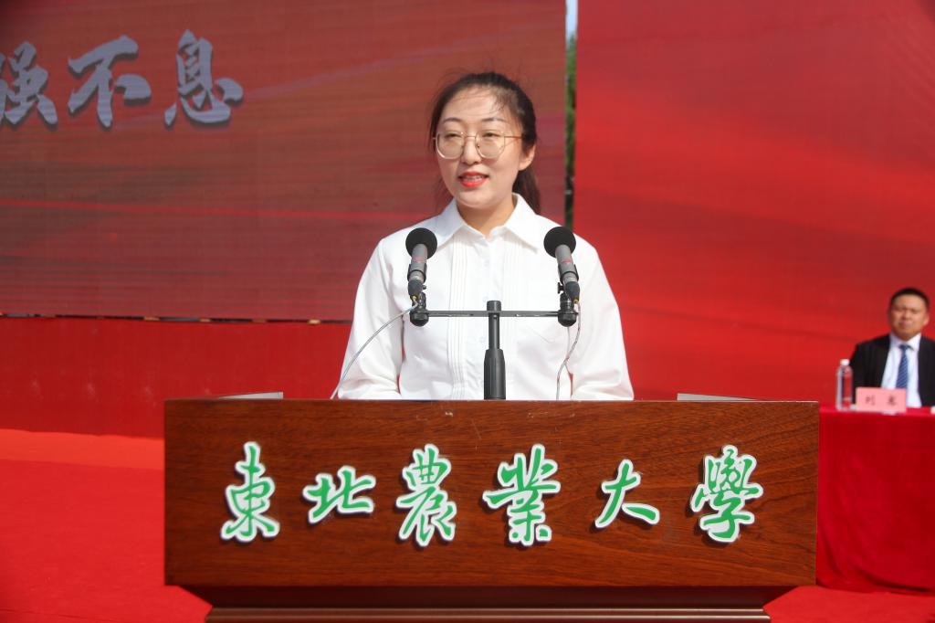 校党委副书记兼工会主席庞玉红在主持典礼时表示,2022年入学的东农学子,经历了极不平凡的几年,在新冠肺炎疫情对学习、生活乃至全球的政治格局、经济发展都产生了重要影响的风险和考验面前,始终保持着对学习的热情和对生活的热爱,迎难而上、奋力拼搏,在风雨中淬炼初心、在危难前担当使命,用实际行动擦亮了新一代东农人的名片。