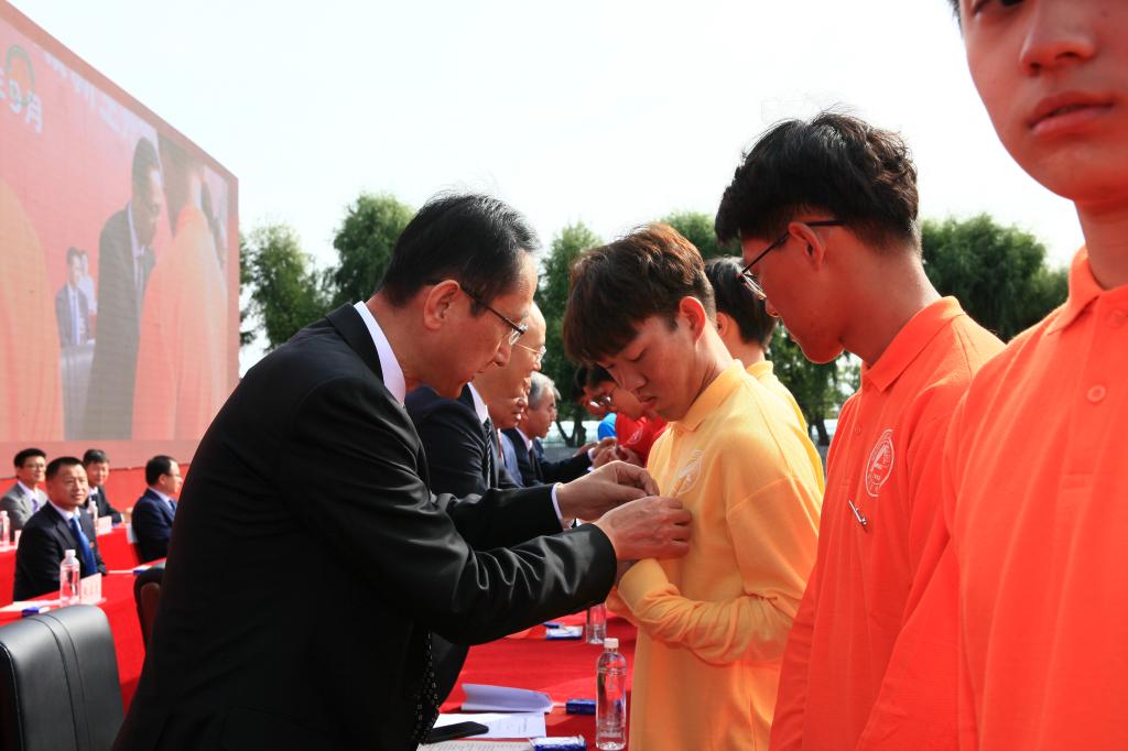 全体校领导为新生代表佩戴校徽