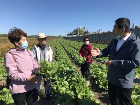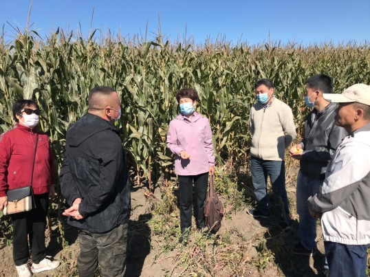 大豆种植专家胡振邦查看了即将成熟的大豆,分析几个品种的大豆生长情况,介绍大豆种植高产丰收技术。玉米种植专家刘显君对实验玉米和大片的种植成熟较好的玉米进行了勘查,根据生长的情况,分析了玉米成熟度,对种植中存在的问题给予了专业技术指导。蔬菜种植专家潘凯来到白菜地,针对白菜的生长情况,分析了白菜种植存在的问题,对不能完全成熟的白菜提出了利用销售方式提高经济效益的建议。