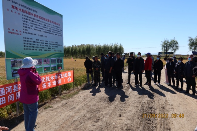 东农老科技工作者刘元英教授作为哈市老科协派出的哈市科技特派员,用了近一年的时间,开展了“寒地水稻旱播水管前氮后移施肥技术”试验示范项目的研究工作。9月21日,通河县农业技术推广中心组织“寒地水稻旱播水管前氮后移施肥技术”成果田间观摩暨技术培训会,刘元英教授作为项目主持人介绍了该项目的研究情况。