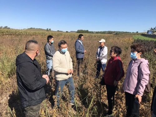 三位专家们到了向阳镇就驱车直奔石槽村种植地,实地了解粮食及蔬菜种植以及秋收情况。向阳镇的庆贵园种植农民专业合作社负责人、粮食种植大户,向阳镇副书记,石槽村村长李明清向专家们详细介绍了大豆、玉米和白菜种植情况。三位专家听取介绍后,分别对种植情况进行了查看、评估和分析,给予了专业性指导。