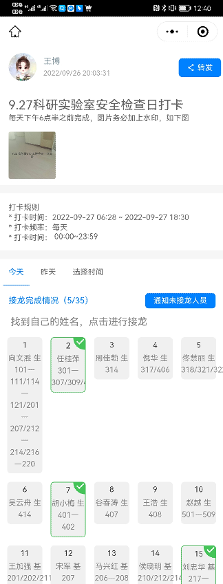 创新开展“科研实验室安全巡查日打卡”制度