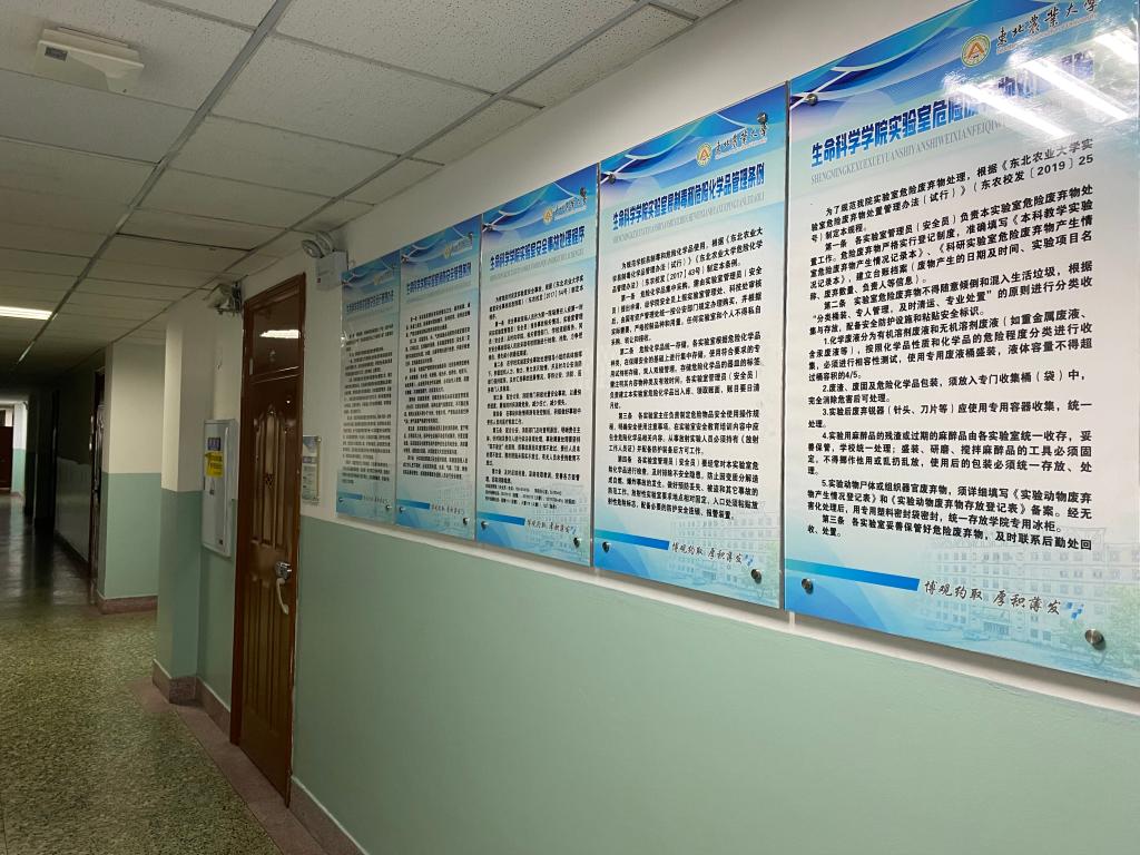 施喜军表示:“物归原处既是习惯养成,也是育人理念。学生养成良好科研习惯,也是学院教育成功的一种体现。”学院重视实验室的环境育人工作。学院优秀前辈的介绍频频出现在楼梯墙和实验室中。一些实验室对近期发表的高水平论文或最新项目成果进行展示,为学生树立目标,鼓励其前行。走廊中展示生物领域科学家的生平事迹和突出贡献,增加学科氛围感,反映学科特色。学生党建知识和学生支部活动的精彩瞬间,也会在实验区域的醒目位置展示。这些无声宝藏静静浸润着学生,也让学院的管理充实着活力。