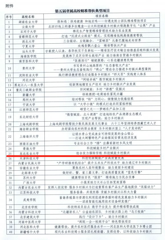 日前,在教育部组织的第五届省属高校精准帮扶典型项目评选中,我校精准帮扶黑龙江省甘南县工作项目《组合发力摒除穷根科技赋能乡村振兴》成功入选并获经费支持。