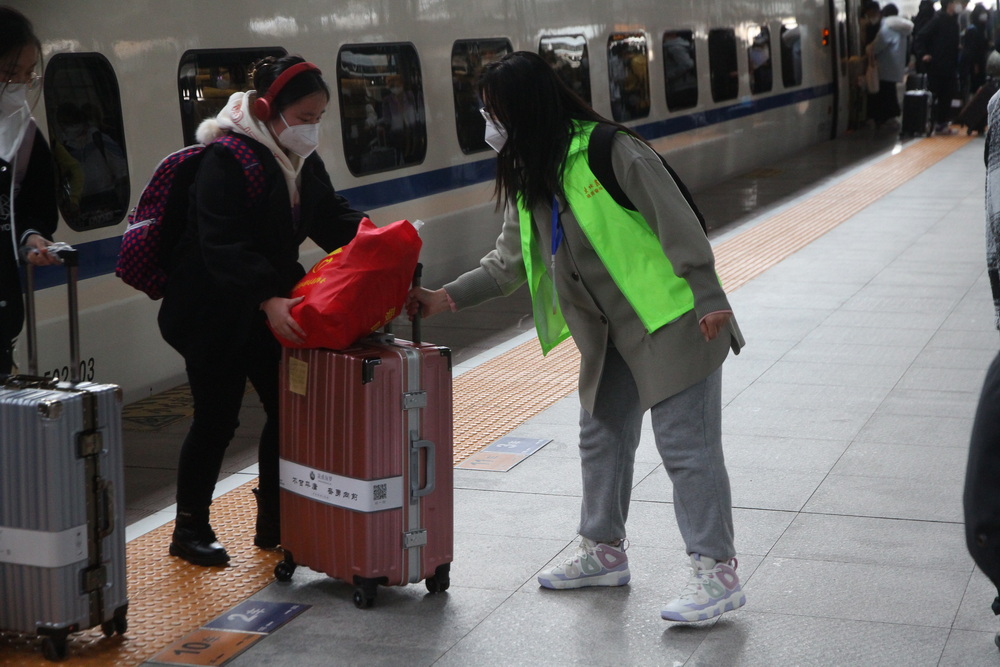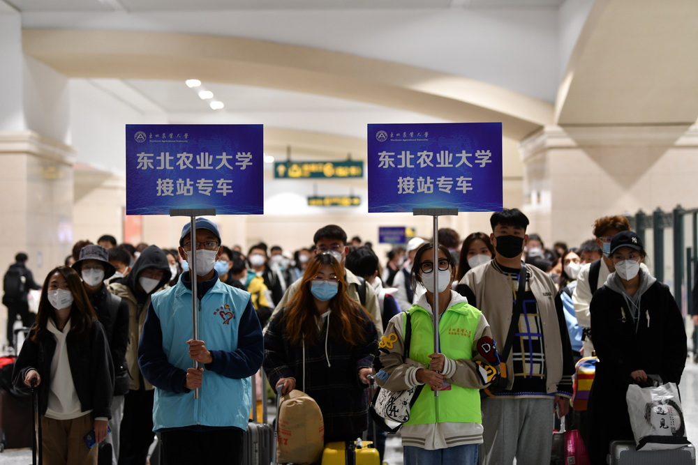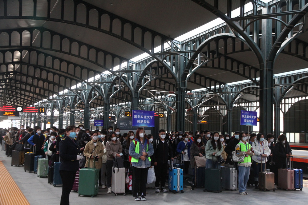 学生工作部学生管理科科长胡超介绍,学工部坚持疫情防控和服务学生两手抓,坚持人性化管理服务,解决学生实际问题。学工部前期分别与大庆市教育局专班协调,为所有离庆返校学生统一在“离庆通道”中解除限制码,保证我校学生顺利返校。并与大庆火车站协调,在大庆东站和西站分别设置东北农业大学学生离庆返校专用通道。学生从专用通道进站乘车,减少了疫情接触风险。我校还与道里区综合执法局协调,在哈尔滨火车站内为返校学生单独设置“两码一酸”检查通道,与其他乘客分开,减少接触风险。同时在车站出口处增设三组核酸检测点,最大程度保障了我校学生快速顺利出站,安全返校。学校为更好地服务好返校学生,专门安排辅导员、志愿者为2022级新生手递手接送学生回寝室,并代为购买生活用品,让新生们感受到来了自学校的安全、周全,以及来自全校师生的温暖和热情。