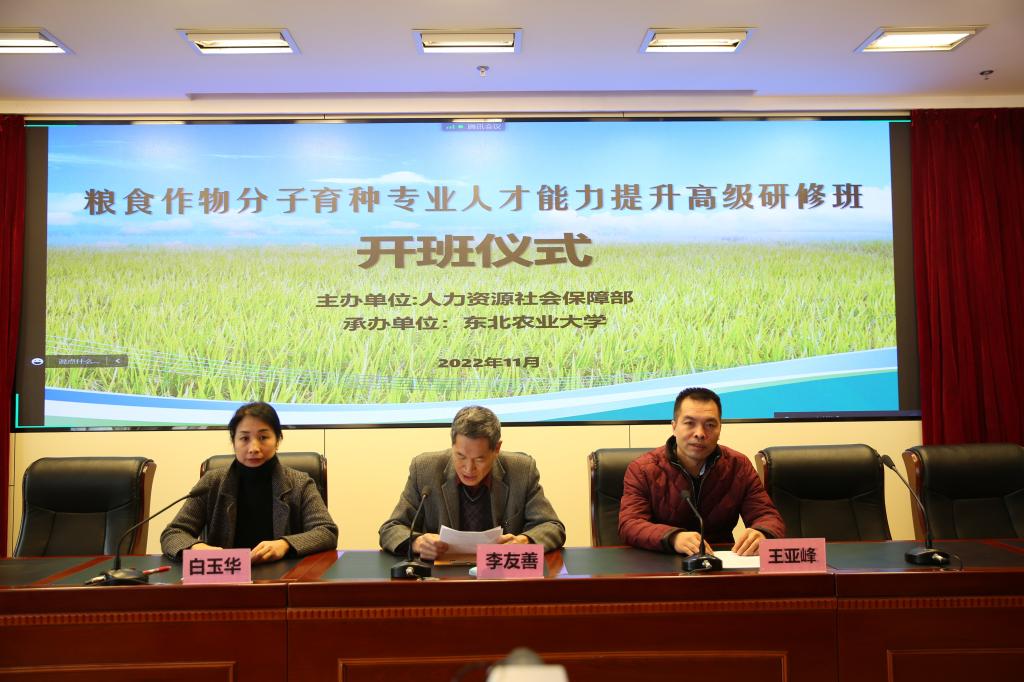 11月15日上午,由人力资源和社会保障部主办、东北农业大学承办的“粮食作物分子育种专业人才能力提升高级研修班”开班仪式在我校举行。全国从事家庭农场经营者、农民合作社带头人、农村“双创”人员、农业企业、农业新型经营主体、农业推广技术人员、涉农院校专业技术与管理人员等200余名学员通过线上参加了开班仪式。继续教育学院党委书记李友善,副院长白玉华出席会议。开班式由白玉华主持。