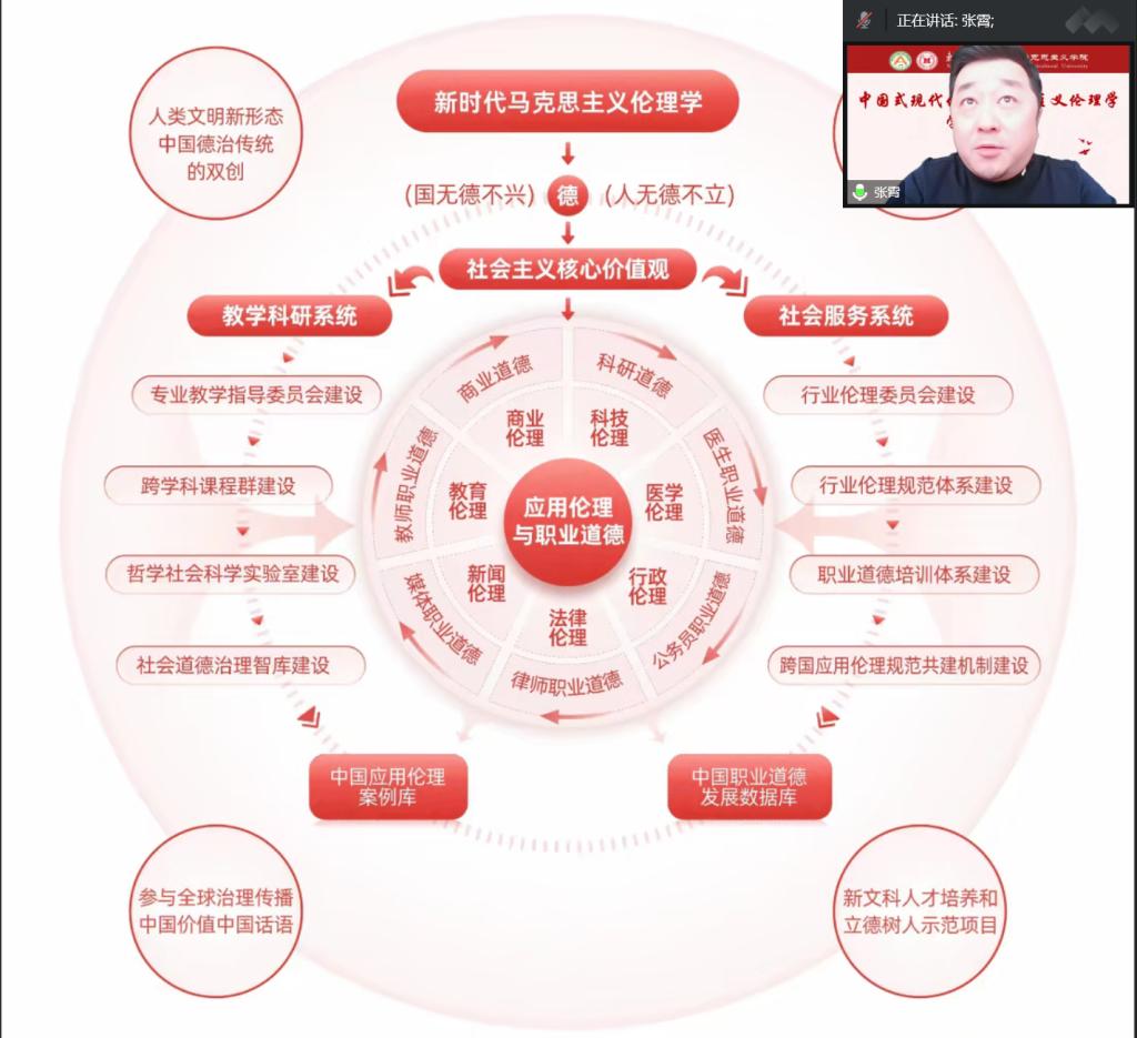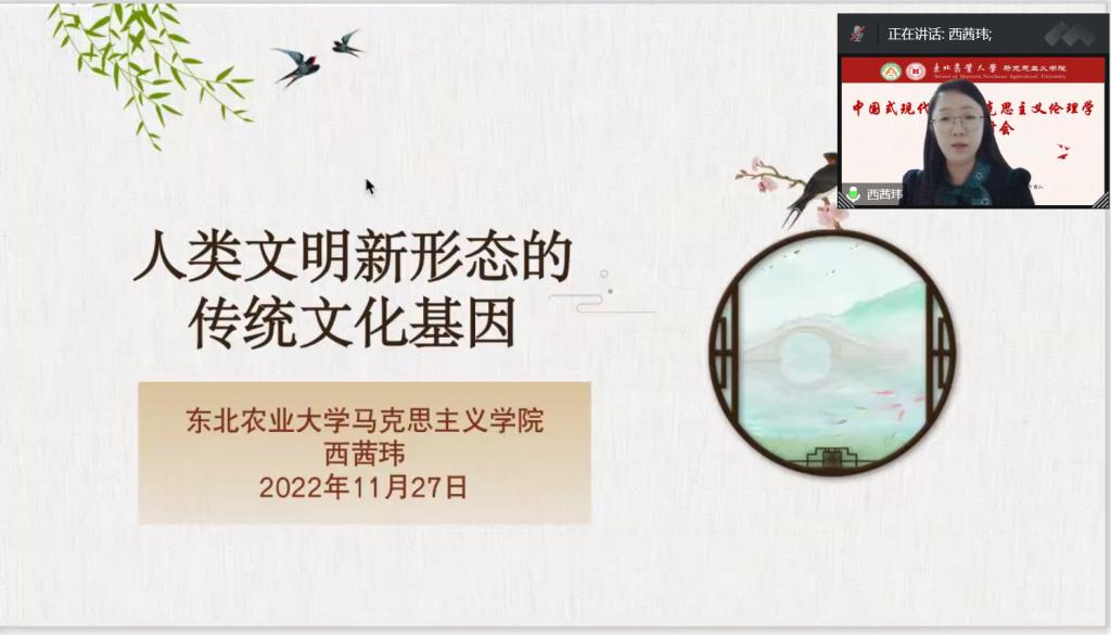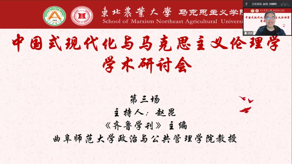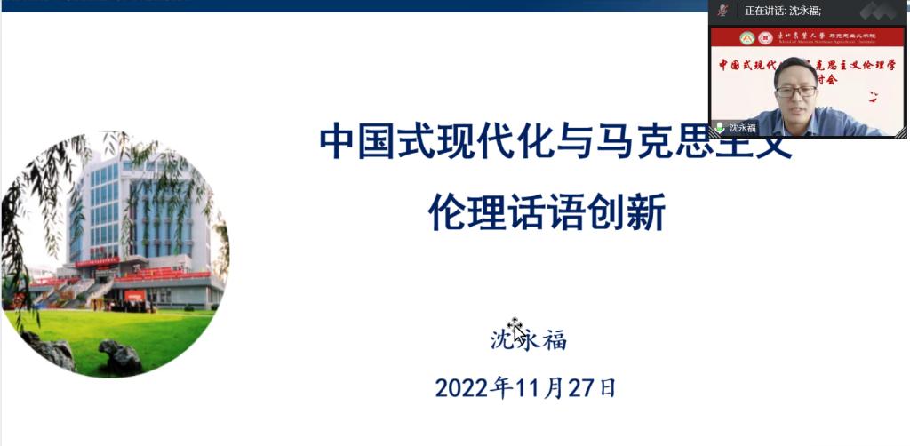 会上,12位专家学者聚焦中国式现代化与马克思主义伦理学研究的前沿问题,以伦理学视角解读党的二十大报告关于中国式现代化的理论。曲红梅教授就马克思主义伦理学在当代的学术定位进行多维学术展示;李义天教授围绕马克思主义伦理学的现代化内容对当下热点问题展开剖析;韩玉胜副教授以传统文化向度论证中国式现代化;冯昊青教授围绕儒家传统“即身德育”思想及其教化路径作主旨发言;张霄教授围绕中国式现代化治理与新时代“以德治国”发言;沈永福教授围绕中国式现代化与马克思主义伦理话语创新发言;方德志教授对中国式现代化道路的情感动因加以阐述。校苏俄伦理学研究团队刘洋、王丰良、梁秋、张峰、西茜玮等青年学者分别围绕相关问题展开研讨并作主旨发言。