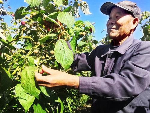 东阳镇东方村脱贫群众刘志方采收红树莓
