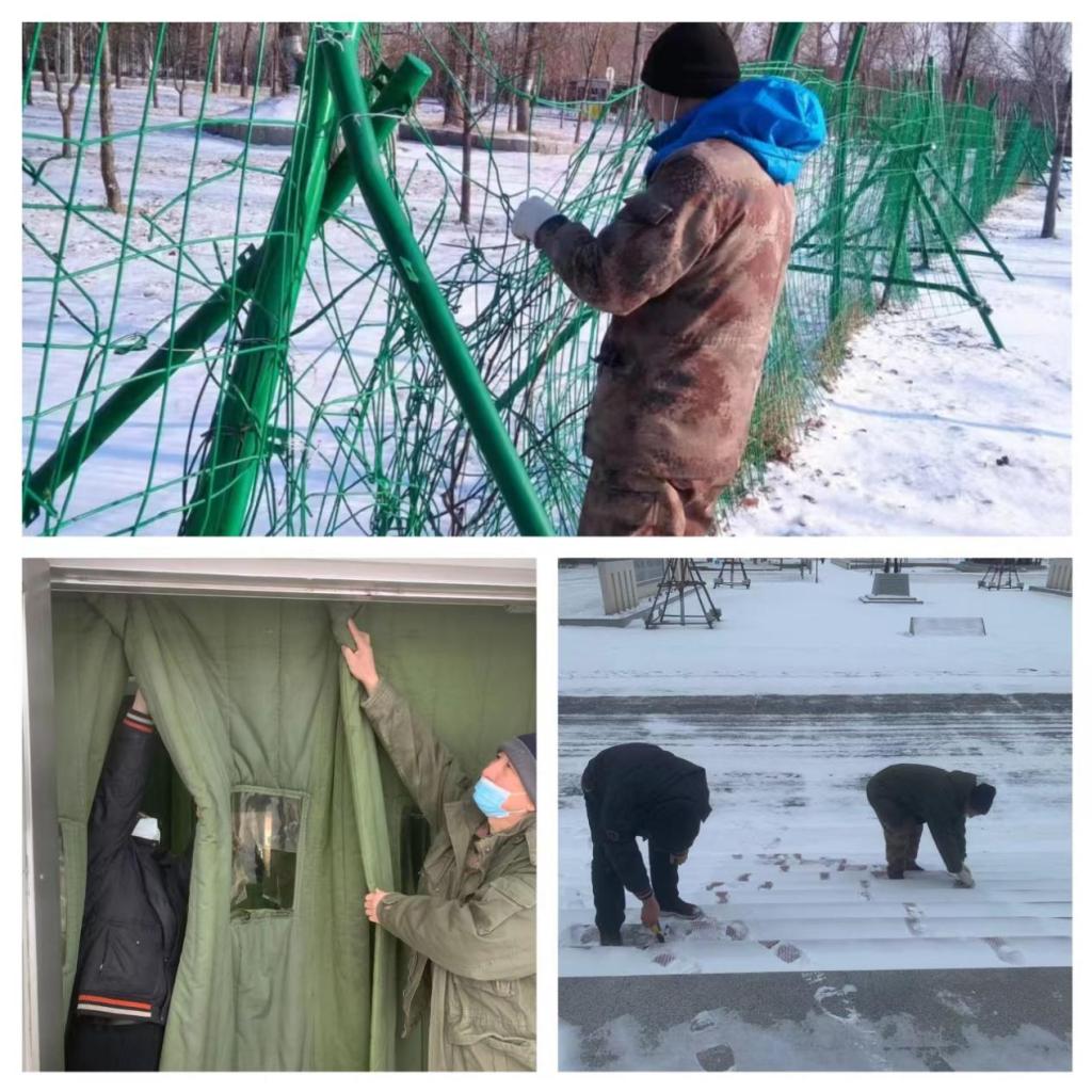 入冬以来,土木维修科为全校教学区办公楼安装棉门帘194片,防滑地毯近千平方米,及时有效地守护“入口屏障”。同时严密巡检各处防疫围栏,找到薄弱点和死角,重新加装新围栏数百米,降低了外来人员入校带来的疫情防控风险。