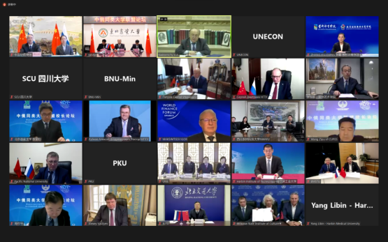 8日下午,中俄同类大学联盟校长论坛在线上隆重举行。俄罗斯教科部副部长芭切洛娃·娜塔莉雅·亚历山大诺夫娜、中国教育部国际司二级巡视员席茄、中国驻俄罗斯大使馆教育处公使衔参赞曹士海、中国教育部中外人文交流中心主任杜柯伟出席论坛。北京大学、对外经贸大学、中国人民大学、莫斯科国立大学、莫斯科国立鲍曼技术大学等十六所中俄高校领导参加会议。