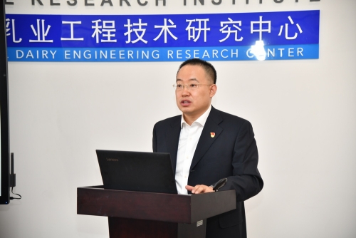 李长生、付强一行分别来到中试产品展厅、农业农村部干乳制品加工技术集成科研基地、农业农村部大豆传统制品加工技术集成科研基地、国家乳制品质量检验检测中心实验室、大豆加工技术研究中心、乳品加工技术研究中心实验室,听取了绿研院副院长高汉峰、杨玉琢,首席专家韩建春、办公室主任兼食品标准与检测中心执行主任杨文敏关于科研成果产业化情况、干乳制品生产加工过程、基地建设情况以及承担国家抽检任务、企业委托技术服务、食品安全国家标准制修订等方面的介绍。