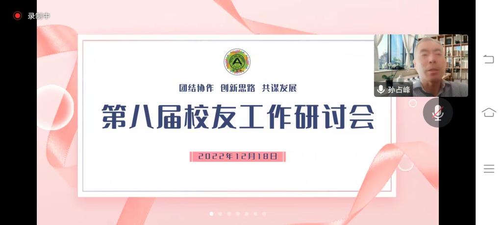 12月18日,我校第八届校友工作研讨会以线上会议形式召开。学校副校长、校友总会副会长孙占峰出席会议。校友工作办公室主任、校友总会秘书长车可舒,校友工作办公室全体工作人员,以及50余名各校友分会代表参加本次会议。会议由校友工作办公室副主任袁洪波主持。