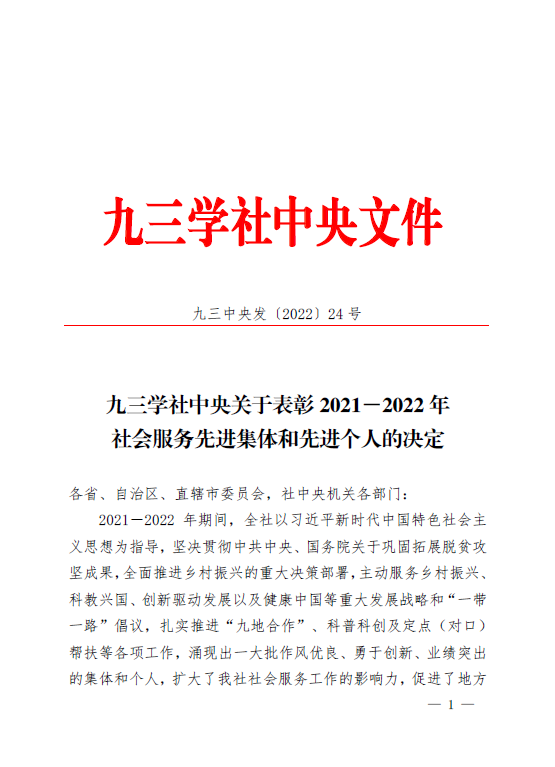 近日,九三学社中央委员会发布《关于表彰2021-2022年社会服务先进集体和先进个人的决定》,九三学社东北农业大学副主委、生命科学学院李凤兰教授荣获九三学社“中央社会服务先进个人”荣誉称号。