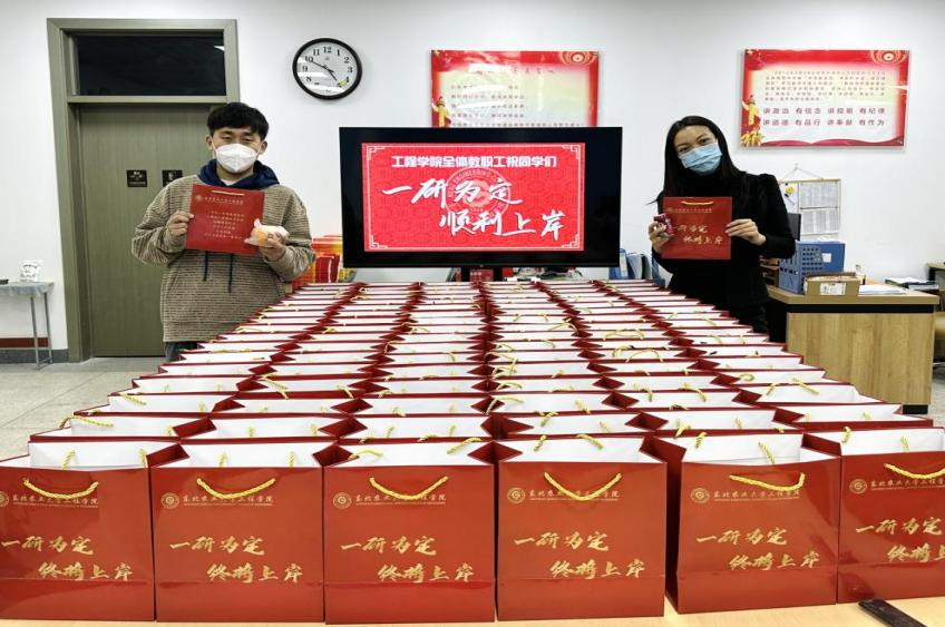 工程学院为270余名考生准备了考研福袋,福袋里装有橙子、牛奶、棒棒糖、以及辅导员老师精心准备的祝福卡片,寓意着“棒”上有名,一战“橙”硕,好运“旺旺”。毕业班辅导员亲手将福袋一个个传递到考研学子手中,询问同学们的近况,勉励大家放平心态,积极备考,力争取得优异成绩,考取理想学校。