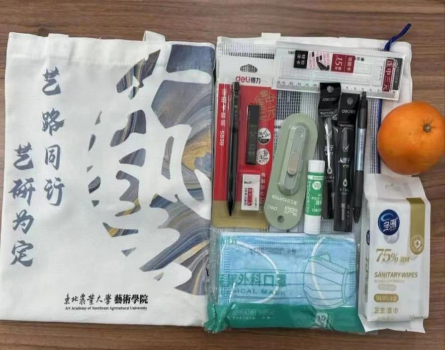 艺术学院为每一位考研学生精心准备了专属礼物,包含了考试必备文具和防疫用品。