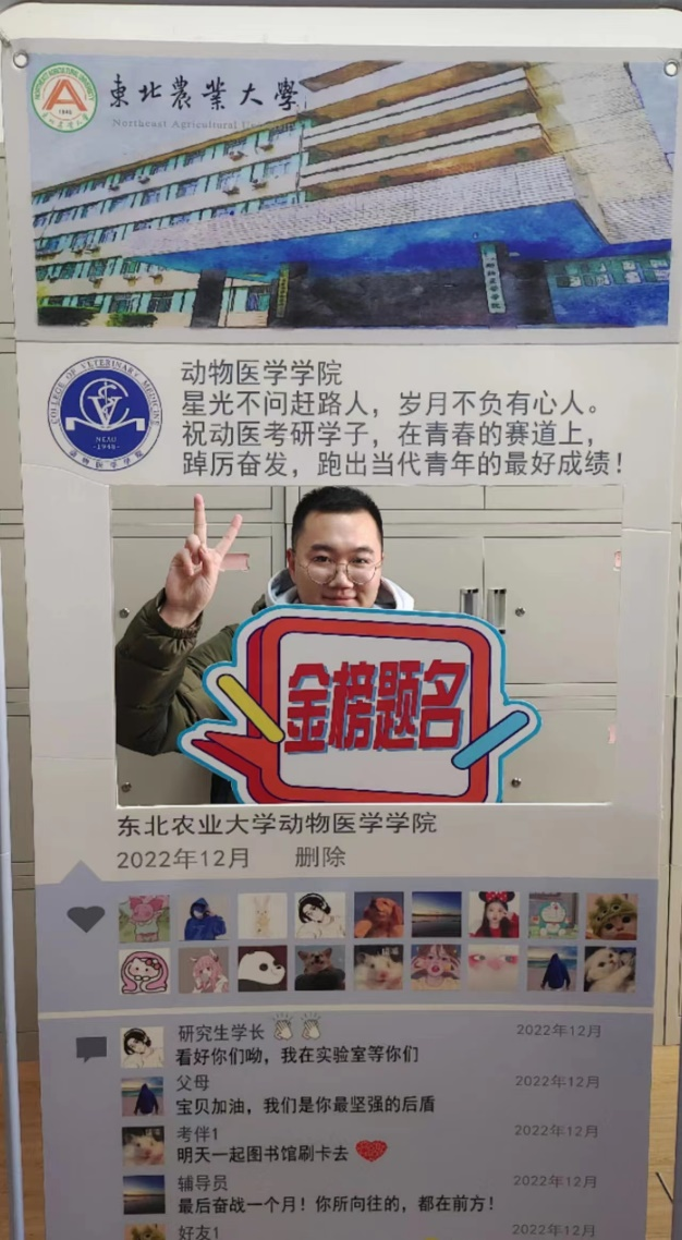 动物医学学院制作“成功上岸”朋友圈展架,为毕业生拼搏奋斗留下难忘记忆;在考研倒计时10天之际,为考研学子发放“成功上岸”水果福袋,寓意“橙”功上岸、“苹”安上岸。