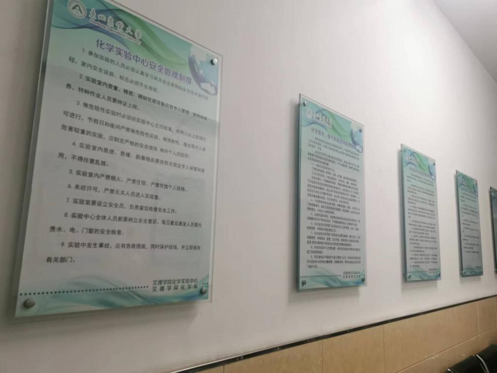 文理学院承担了我校所有化学类、物理类、数学类实验课程,是我校动科、动医、食品、生物等一流学科建设专业和水利、土工、机械、机化等工科认证专业重要的公共基础课程,每年选修本科实验课程的学生6000余人。此外,还承担应用化学和化学生物学两个本科专业450余人的实验类课程和各类实习、实践类课程,年合计实验学时12772.5学时。为此,学院高度重视实验室安全建设工作,成立了安全工作领导小组,学院领导班子每学期对实验室重点区域进行两次安全、卫生大检查,对发现的各类实验室及实验库房等重点场所存在的安全隐患进行“全过程、全要素、全覆盖”排查,列出整改清单,建立安全台账,明确整改责任人,提出具体有效的整改措施。同时与各系(部)层层签订安全责任状,建立和完善实验室安全工作领导机制和保障体系,实验中心制定《易制爆危险化学品管理细则》《突发事故应急预案》《气体钢瓶安全管理办法》等系列安全管理制度,做到机制健全、体系完备、制度齐全、提醒到位。