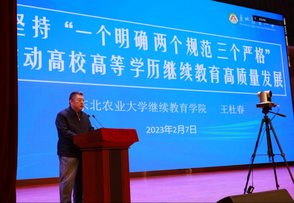 王杜春在交流发言中表示,东北农业大学作为全国首个农业网络教育试点院校,始终坚持高质量发展继续教育,累计培养了近35万名专业人才,为龙江与全国农业产业转型发展与乡村振兴提供了坚实的人力资源保障。一是明确办学目标与定位。学校在章程中明确继续教育与本科教育、研究生教育共同构成学校的教育体系。培养目标确定为面向三农培养“理想信念坚定和知农爱农情深、适应未来职业和社会发展需要、具有较高职业素养、能解决复杂专业问题的职业性应用型卓越农业人才。”二是规范设置招生专业,依托具有深厚学科底蕴和产业基础优势的特色学科,设有18个专升本、4个高升本专业,形成了以农科为优势特色,工、管、理、经等学科协调发展的专业格局。三是规范教学过程管理。全面规范招生宣传,强化线下辅导与考试管理,坚持毕业论文全员指导、查重、答辩。四是严格管理校外教学点。建立了校外教学点办学风险预警机制、巡视检查机制、联评工作机制,形成了学校与教学点一体化教学管理体系。五是严格打造质量保障体系。对教学互动、辅导答疑、课程作业等教学环节建立常态化评估机制,把评估诊断与持续改进深度融合,形成质量保障的闭环。六是严格开展多方位管理服务。探索出技术平台体系、教学资源体系、教学运行体系、质量保障体系、对外合作体系、管理服务体系的“六位一体”高等学历继续教育管理服务模式。