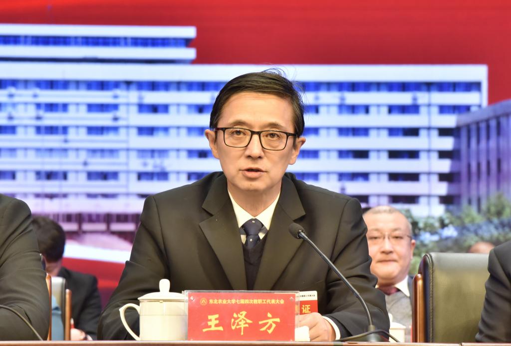 校党委副书记王泽方同志宣读关于《东北农业大学优化激励机制系列办法(草案)》的决议草案