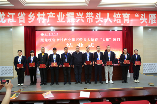 学员代表、哈尔滨市方正县宝兴乡胜利村村书记王德龙在发言中感谢省农业农村厅和东北农业大学为“头雁”提供学习的平台,使学员们进一步加深了对农业农村工作的认识,强化了新农村建设的理念,更新了知识,明确了头雁使命,学员们将积极探索农业发展新思路新模式,找准工作切入点,做好农村“领头雁”,带领企业员工和全体村民在乡村振兴的道路上不断拼搏,踔厉奋发、勇毅前行。