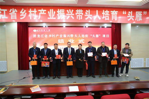 3月6日,黑龙江省2022年乡村产业振兴带头人培育“头雁”项目线下班结业仪式在国际文化教育学院会议室举行。我校教务处处长张永强,继续教育学院党委书记李友善、院长王杜春、副院长白玉华、培训班班主任,以及全体学员出席会议。会议由李友善主持。