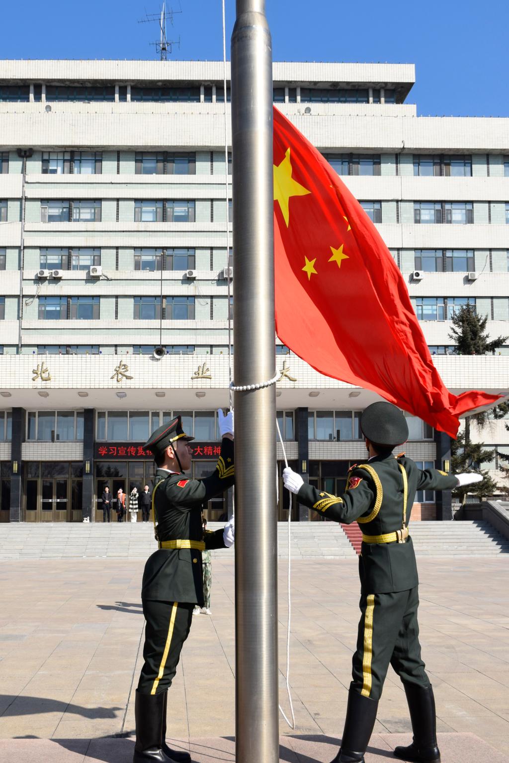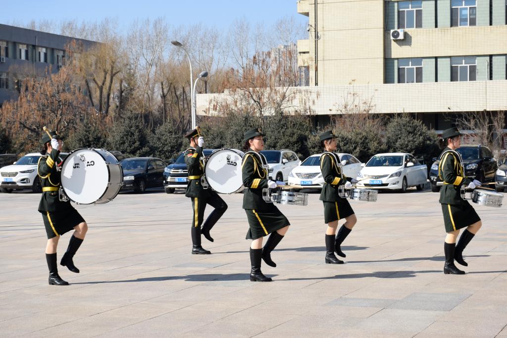 我校国旗护卫队展示升国旗仪式和军鼓舞