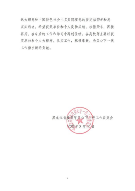 今后,学校关工委将以党的二十大精神为引领,协助学校党委引导广大东农青年师生赓续党的红色血脉、弘扬党的优良传统,坚定信仰、勇毅前行,在新征程上立志做有理想、敢担当、能吃苦、肯奋斗的新时代好青年。
