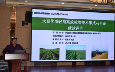 龚振平对项目整体情况进行了汇报。项目按照“关键技术创新→集成技术模式创新→基地示范→辐射推广”的技术路线,建立大豆、油菜、花生品种生态适应性评价体系6套以上,筛选品种36个以上,申请和授权专利10项以上,形成技术规程10套以上,辐射推广1200 余万亩;发表论文20篇以上,培训农技人员3000多人次、职业农民6000 多人次,培养研究生20余名;增加间接经济效益15亿元以上,已圆满完成任务指标。
