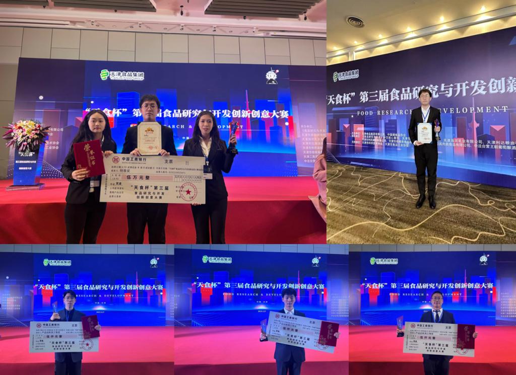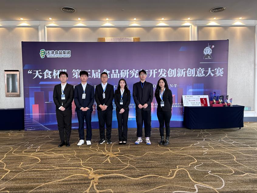 本次比赛以“科技创新&市场驱动”为主题,共收到全国29个省市自治区95个参赛单位的755件参赛作品。前期通过形式审查、网络函评、企业专家集中会评等,共有50件作品入围决赛。经预决赛路演、试制样品品鉴、专家评委会质询等环节,评选出最终获奖作品。我校共有四支队伍均成功晋级决赛并全部获奖,其中,由刘骞指导,王宇彤、杨博文等同学研发的“脱颖‘鹅’出——预包装滋补铁锅炖大鹅”荣获自比赛开办以来第一个特等奖。杨博文荣获“天食明日之星”个人奖。由马艳秋、迟玉杰指导,郑雷、杨盼等同学的作品——“萌蛋自来熟”;由夏宁指导,陈骐、刘郅豪等同学的作品——“‘享素未来’——纯植物基发酵素肠”;由刘璐指导,刘郅豪、陈骐等同学的作品——“沉睡的布丁”分别荣获创新类三等奖。
