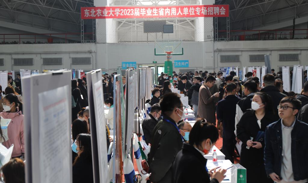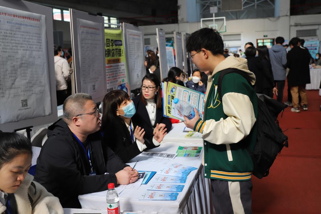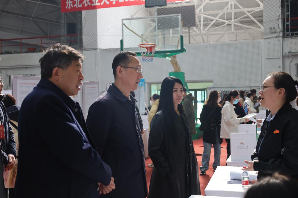为深入贯彻落实教育部和全省普通高校2023届毕业生就业工作第一次调度会议的部署要求,深入实施春季促就业攻坚行动,落实省教育厅“万企进校园计划”,充分发挥校园招聘主渠道作用,引导更多东农学子扎根龙江、奉献龙江,3月28日上午,我校在体育馆举行2023届毕业生省内用人单位专场招聘会。香坊区委书记李亚飞、区委副书记、区长黄晓伟,我校党委书记李长生、党委副书记兼工会主席庞玉红到会与用人单位进行交流,听取用人单位对学校人才培养、就业服务等方面工作的意见与建议,开展访企拓岗促就业对接工作。招生就业处处长宋跃芬、副处长吴立龙以及各学院党委副书记、毕业班辅导员到会了解用人需求,指导毕业生积极求职。