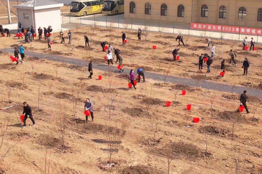 新栽桃李三百株,四月春景践耕读。4月15日上午,东北农业大学党委书记李长生、校长付强亲自带队,副校长李伟凯、刘晓峰、刘竹青,省绿色食品科学研究院党委书记、院长高放及各单位党政负责人共同前往学校向阳基地,开展以“植树添新绿,不负好春光”为主题的春季义务植树活动。