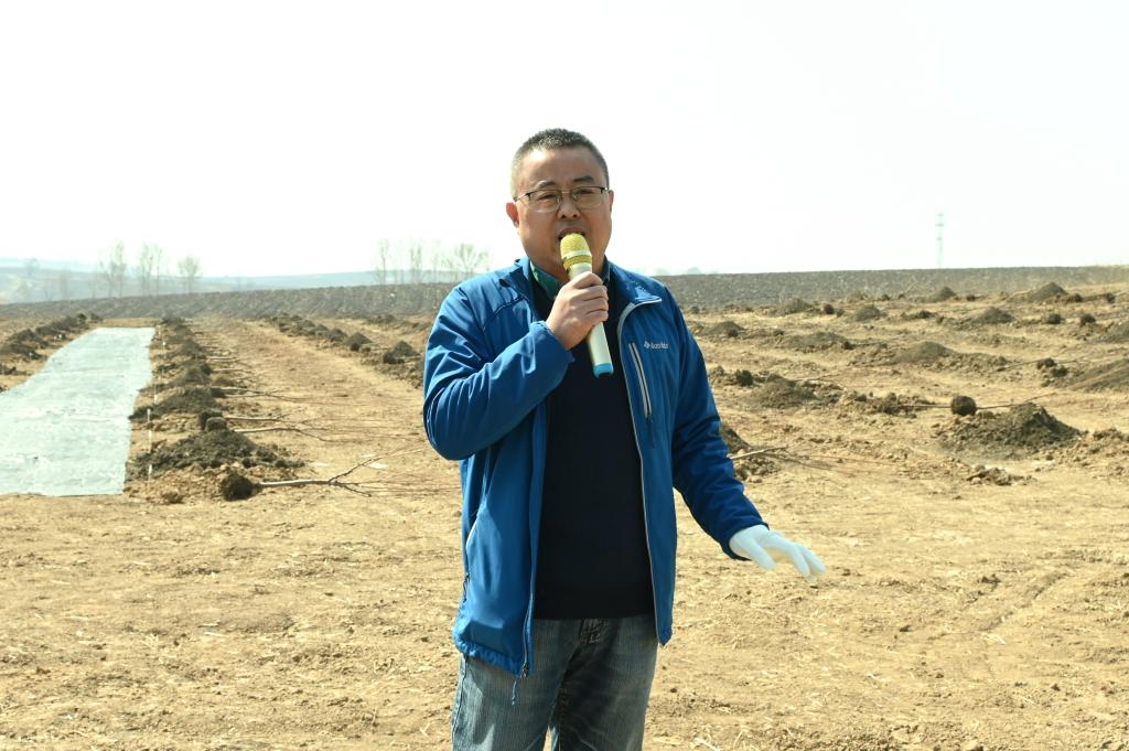上午10时,植树活动正式开始。此次植树活动共选用三个树种300余株树苗,分别是寓意桃李天下的李子树、寓意平安和谐的苹果树、寓意团结奉献的樱桃树。为提升种植效果及树苗成活率,劳动开始前,园艺园林学院副院长秦栋为大家详细介绍了种植方法及注意事项。随即,大家按照栽种要领展开劳作,现场一派繁忙景象,参加活动的领导干部结对成组,扶正树苗、挥锹铲土、培土围堰、提水浇灌,共同协作、其乐融融,为基地种下一片新绿,为学校生态环境建设贡献一份力量。