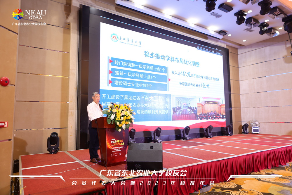 4月15日,广东省东北农业大学校友会会员代表大会暨2023年校友年会在广州隆重举行。广东省东北农业大学校友会第二届理事会全体成员、会员代表及各地校友近180人欢聚一堂,共襄盛会。东北农业大学副校长、校友总会副会长孙占峰带队,校友工作办公室主任、校友总会秘书长车可舒,校友事业科科长张海同行赴广州参会。