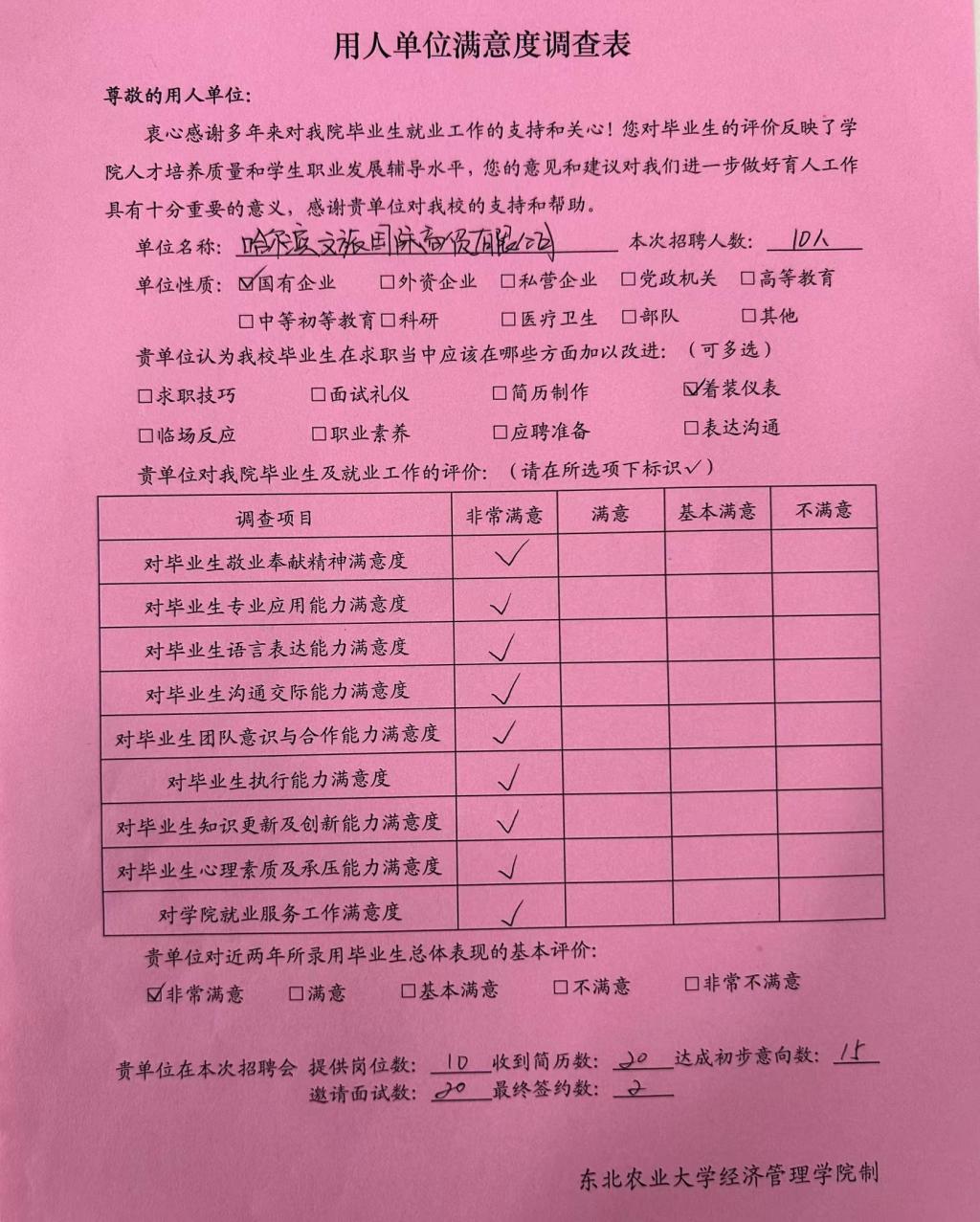 会前,学院还积极邀请全国各地相关企业进行系列“经致就业”育人课堂专题讲座,为毕业生提供职业生涯规划指导,学院联系39家具有代表性的用人单位提前录制企业宣传视频在招聘会现场循环播放,会后学院对全体参会用人单位发放了调查问卷,对学院毕业生及就业工作进行满意度测评,为学院进一步细化就业举措、优化就业服务提供参考。
