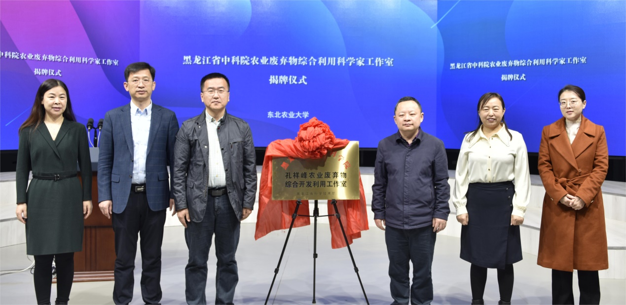 为深入贯彻落实习近平总书记提出的“绿水青山就是金山银山”的发展理念及关于黑土地保护的重要指示精神,推进农村环境治理及废弃物资源化利用,4月20日上午,由东北农业大学生命科学学院主办,学校首个黑龙江省中科院科学家工作室--中国科学院孔祥峰农业废弃物综合开发利用工作室揭牌仪式暨寒地农业资源化利用及黑土保护科学家论坛在学校举行。黑龙江省对外科技合作中心(省院士工作服务中心)部长谭贺,中国科学院亚热带农业生态研究所研究员孔祥峰,中国科学院遗传与发育生物学研究所研究员王选,学校科技处处长寇胜利、副处长初鸿,研究生院院长刘世英,生命科学学院院长武小霞、教授李凤兰,资源与环境学院院长张颖出席揭牌仪式。揭牌仪式及论坛通过线下与线上直播同步进行,学校相关研究领域师生100余人现场参加。科学家工作室揭牌仪式和专家报告环节分别由生命科学学院副院长柏锡教授和武小霞主持。