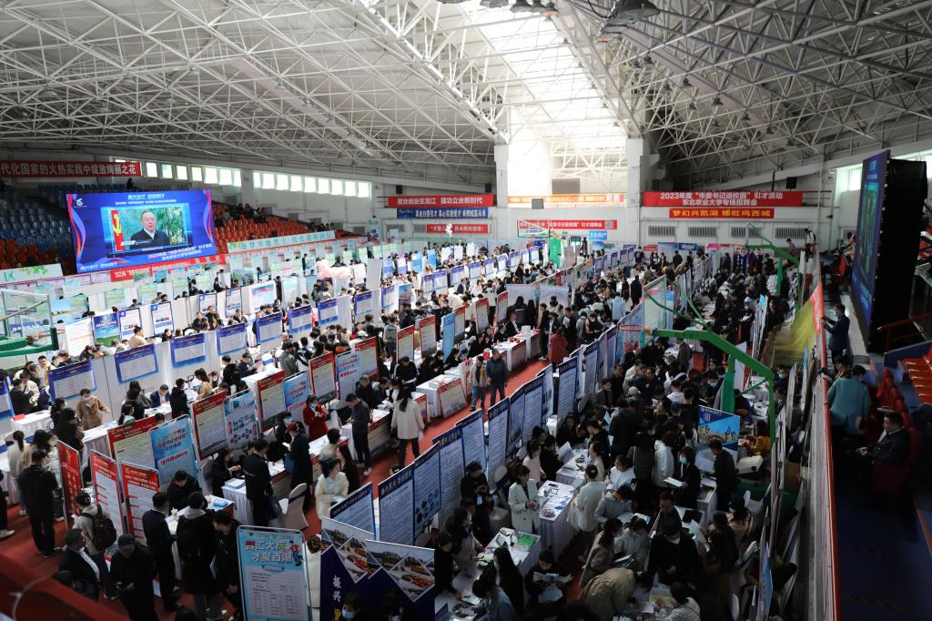 会议现场播放了13个市地市委书记或组织部长录制的引才宣传短视频。来自省内13个市地的220家企事业单位参加活动,累计提供岗位17000余个,省内各高校4000余名毕业生参会,学校达成就业意愿学生395人。作为省内四场“市委书记进校园”引才专场招聘会之一,学校高度重视此次招聘活动,进行了精心部署和安排。招生就业处提前和各市地人才服务部门对接沟通,协助各市地做好人才政策推介和招聘需求发布。招聘现场设置了就业指导服务专区,为学生提供简历诊断、招聘材料打印等服务。同时,设置访企拓岗洽谈区和科技成果转化对接洽谈区,为学校和各市地就学生就业实习、成果转化、科技合作搭建交流平台。
