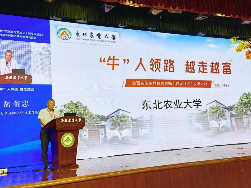 在典型案例交流环节,东北农业大学和北京大学等9所高校专家围绕乡村振兴典型经验和具体做法作交流汇报。岳奎忠从推动产业创新发展、打造脱贫致富产业、技术集成推动产业兴旺、提升农民科学素质四个方面介绍了学校科技赋能杜蒙县、林甸县奶业发展,助力杜蒙县、林甸县脱贫攻坚和乡村振兴的典型经验和鲜活事迹,得到参会嘉宾的高度认可。