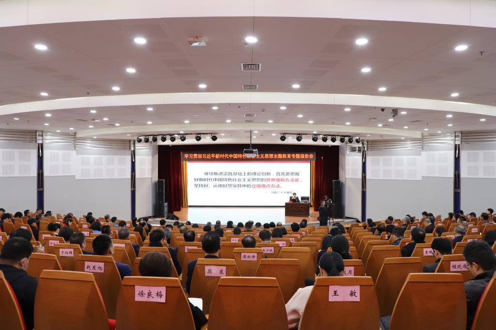 为深入开展学习贯彻习近平新时代中国特色社会主义思想主题教育,全面系统掌握习近平新时代中国特色社会主义思想的基本观点、科学体系,把握好这一思想的世界观、方法论,4月24日,东北农业大学召开学习贯彻习近平新时代中国特色社会主义思想主题教育专题报告会,中共黑龙江省委党校马克思主义学院院长高原丽教授作了题为《习近平新时代中国特色社会主义思想的世界观和方法论》的专题辅导。全体校领导、全校正副处级干部及教工党支部书记参加报告会,会议由校党委副书记、校长付强主持。