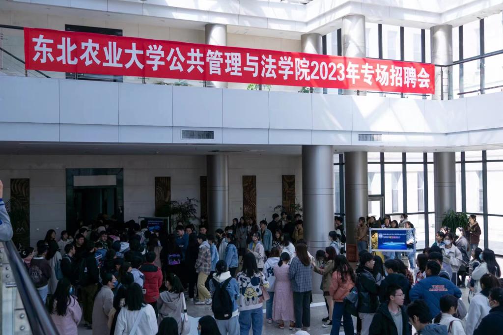 为全面贯彻落实党中央、国务院“稳就业、促就业、保就业”的决策部署和教育部、黑龙江省教育厅的相关工作安排,持续深化就业市场拓展和优质就业资源整合,切实保障每一位毕业生的就业权益,满足各单位用人需求,4月26日,学校在音乐厅举办东北农业大学公共管理与法学院2023届毕业生专场招聘会,通过现场政策宣讲、岗位介绍、求职服务、直播带岗等形式为毕业生和用人单位提供全面优质服务,搭建精准对接平台,切实推进2023届毕业生就业工作。学校党委副书记王泽方,招生就业处处长宋跃芬、副处长吴立龙,公共管理与法学院领导班子成员、各系部主任及全体辅导员参加此次招聘会。