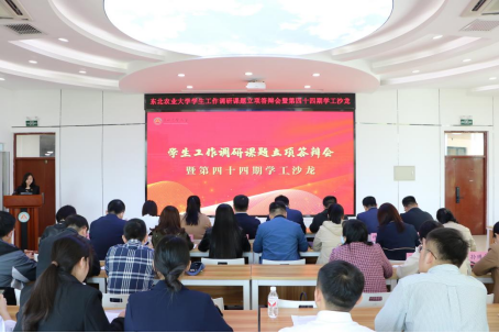为深入落实学校党委高质量开展好主题教育工作要求,切实提高学生工作队伍的调查研究能力,深入了解大学生思想政治状况,通过调查研究聚焦真问题,下足真功夫,锻炼真本领,5月9日上午,东北农业大学2023年学生工作调研课题立项答辩会暨第四十四期“学工沙龙”在食品实验楼315会议室举行。学校科技处处长寇胜利,学生工作部部长于兴业,马克思主义学院副院长赵继颖,学生工作部副部长宫建伟、刘双奇,招生就业处副处长李巍,校团委副书记焦文静以及各学院党委副书记担任立项答辩评委。答辩会由学生工作部副部长刘钊熠主持。