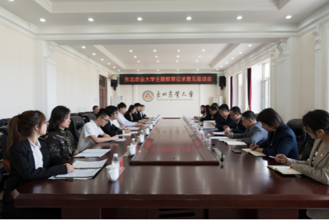 为深入推进学习贯彻习近平新时代中国特色社会主义思想主题教育调查研究、推动发展、检视整改工作开展,按照学校主题教育工作安排,5月15日,东北农业大学召开学习贯彻习近平新时代中国特色社会主义思想主题教育征求意见座谈会,校党委副书记王泽方主持会议并讲话,学生工作部部长于兴业、团委书记李卡、办公室副主任张维生,来自部分学院的辅导员和学生代表参加会议。