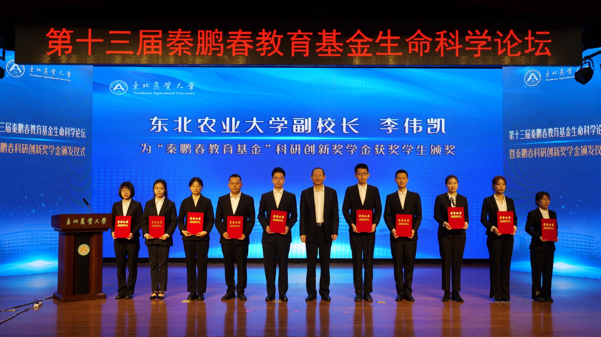 5月20日至21日,东北农业大学第十三届“秦鹏春教育基金”生命科学论坛暨秦鹏春科研创新奖学金颁发仪式以线上线下相结合的方式在学校图书馆一楼报告厅隆重举行。中国科学院院士周琪、孟安明、卞修武、魏辅文、王松灵和中国工程院院士张学等6位院士,以及北京中医药大学校长徐安龙教授,同济大学高绍荣教授,中科院动物所胡宝洋研究员、王红梅研究员、刘光慧研究员、焦建伟研究员、李伟研究员、赵同标研究员、顾奇研究员,中山大学项鹏教授,中国农业大学韩建永教授,中科院广州生物医药与健康研究院赖良学研究员,吉林大学李子义教授,内蒙古大学李光鹏教授、杨磊研究员,苏州大学胡士军教授,华中农业大学苗义良教授,厦门大学王乐韵研究员,北京干细胞与再生医学研究院院长助理林宇等应邀出席论坛。学校党委书记李长生,校长付强,党委副书记王泽方,副校长李伟凯、孙占峰、刘竹青,省绿色食品科学研究院党委书记、院长高放,在哈高校、科研院所有关负责同志,学校相关职能部门负责同志,秦鹏春教育基金理事和校友代表,生命科学学院、动物科学技术学院、动物医学学院负责同志和师生代表出席,广大师生通过直播方式同步观看,线上线下2000余人参加开幕式。开幕式由孙占峰主持。