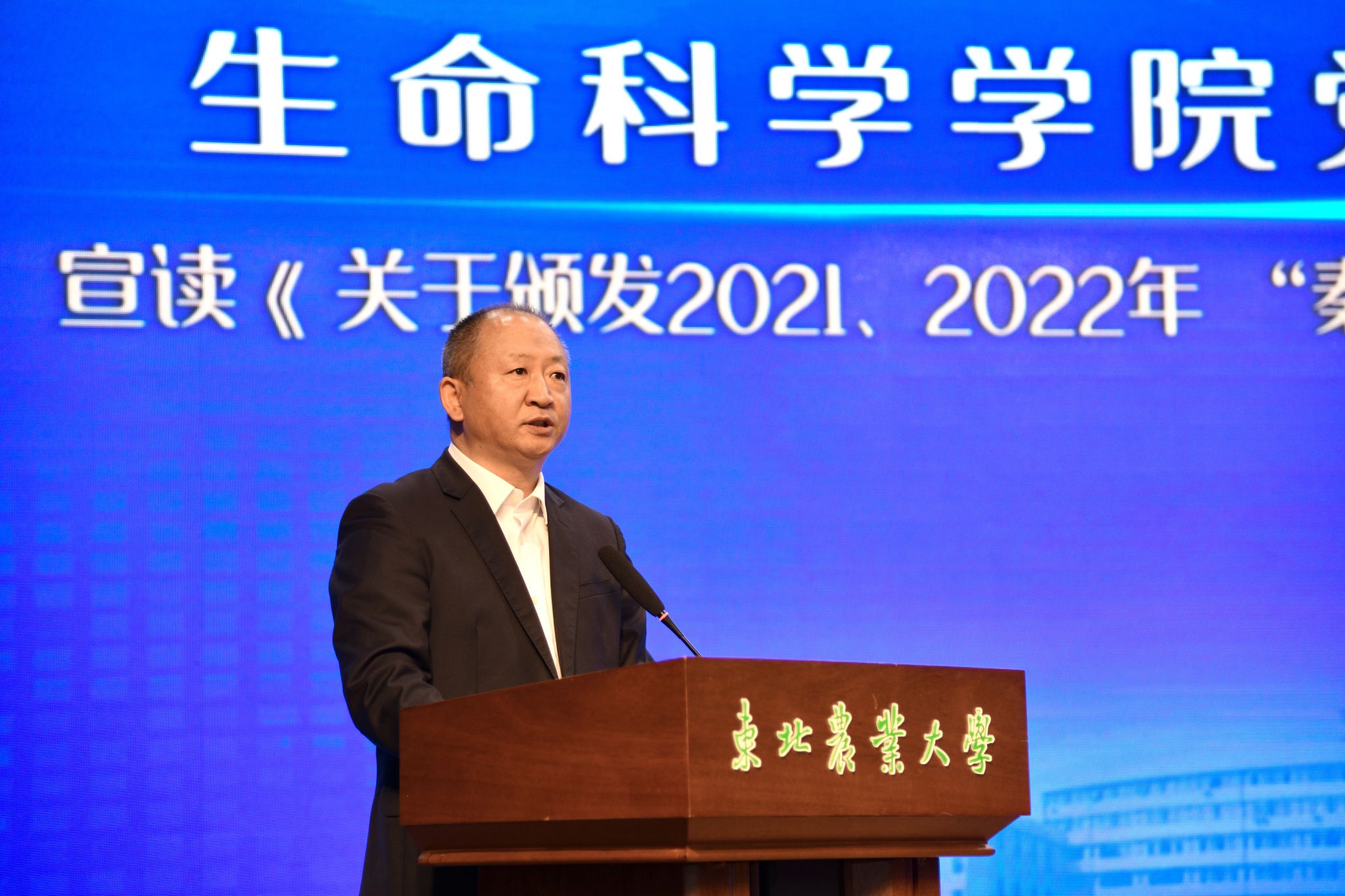 秦鹏春教育基金常务副理事长、生命科学学院党委书记施喜军宣读了《关于颁发2021、2022年“秦鹏春教育基金”科研创新奖学金的决定》。